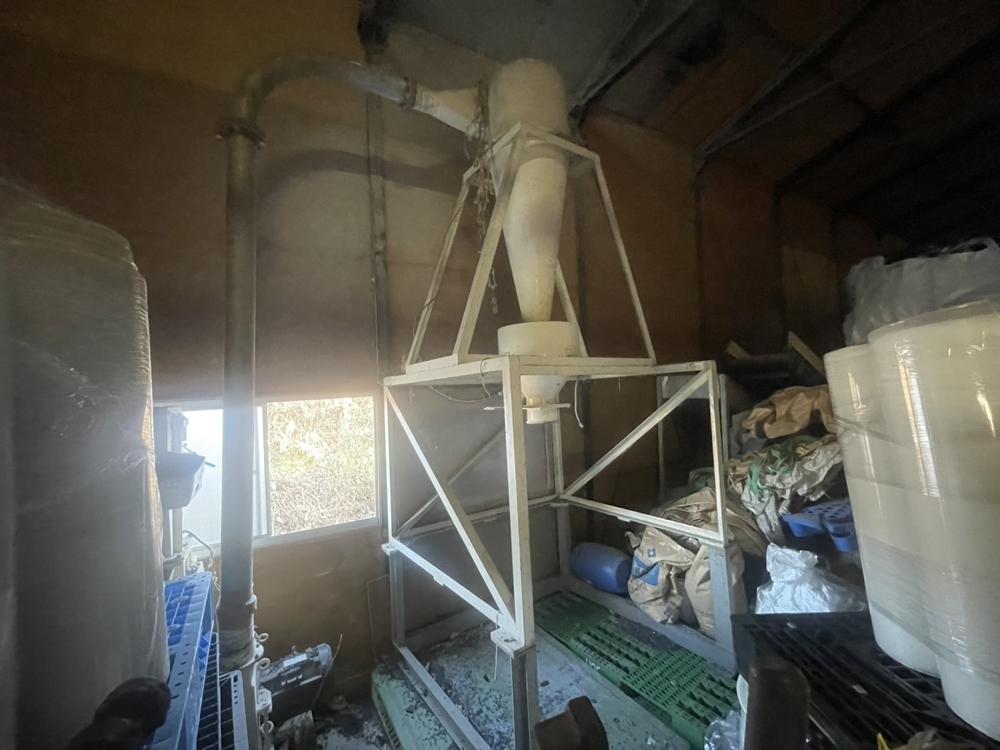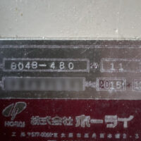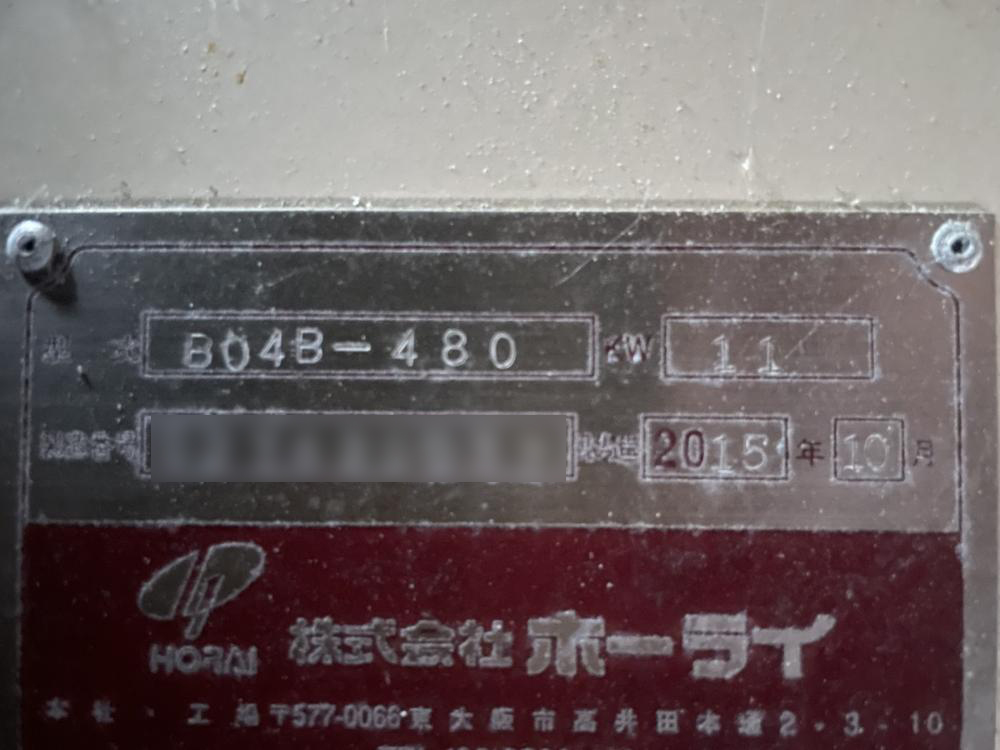 | 【内容】 | ・品名:ホーライ製粉砕機 11㎾ ・メーカー:ホーライ ・型式:B04B-480 ・年式:2015年 ・付属品:送風機、サイクロン付き 【粉砕機】 ・高さ:約1,820 mm ・幅 :約1,370 mm ・奥行:約750 mm 【サイクロン本体】 ・高さ:約2,120 mm ・径 :約520 mm 【サイクロン(架台込み)】 ・高さ:約3,590 mm ・幅 :約1,600 mm ・奥行:約1,400 mm 【操作盤】 ・高さ:約1,750 mm ・幅 :約600 mm ・奥行:約260 mm |