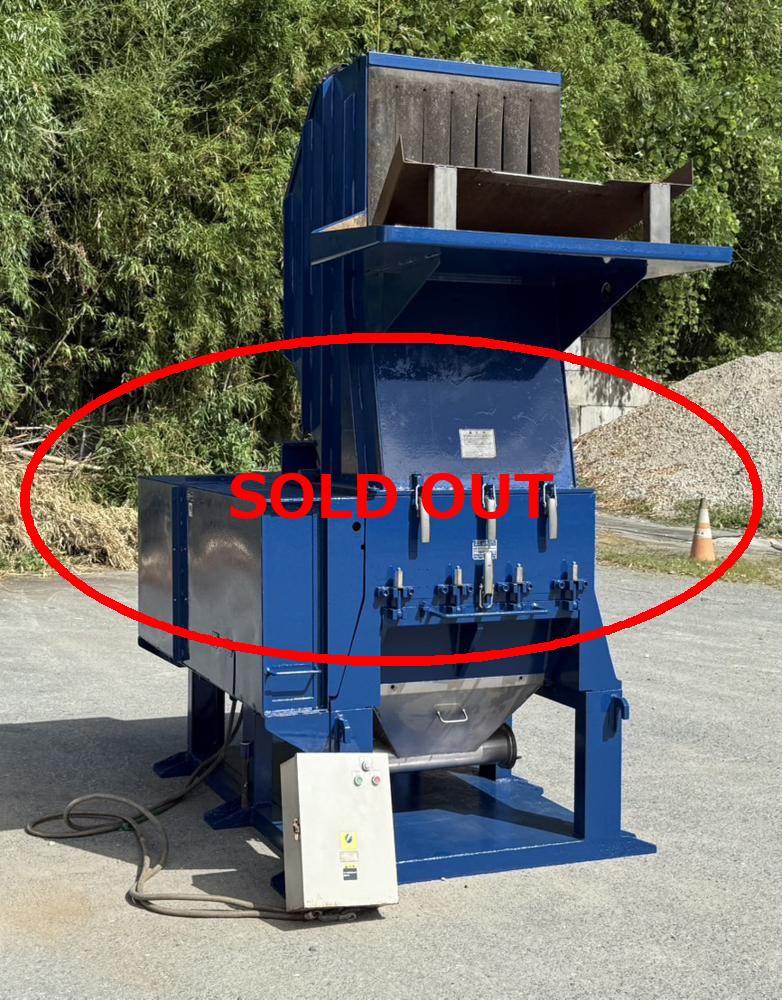 | 【内容】 | ・品名:ダイコー精機製1軸粉砕機 ・メーカー:ダイコー精機(株) ・型式:DAS-72 ・電源:三相200V ・動力:22kW ・回転刃/固定刃枚数:9枚/4枚 ・ローダー径×幅:Φ550×700mm ・投入口寸法:720×680mm ・粉砕室サイズ:710×500mm ・スクリーン穴径:Φ10mm ・排出ホッパーフランジ外径:Φ125mm ・機械寸法:W1370×D2400×H2810mm ・機械重量:約3,500kg ※スプールランナーや車のバンパー等の破砕にいかがでしょうか? |