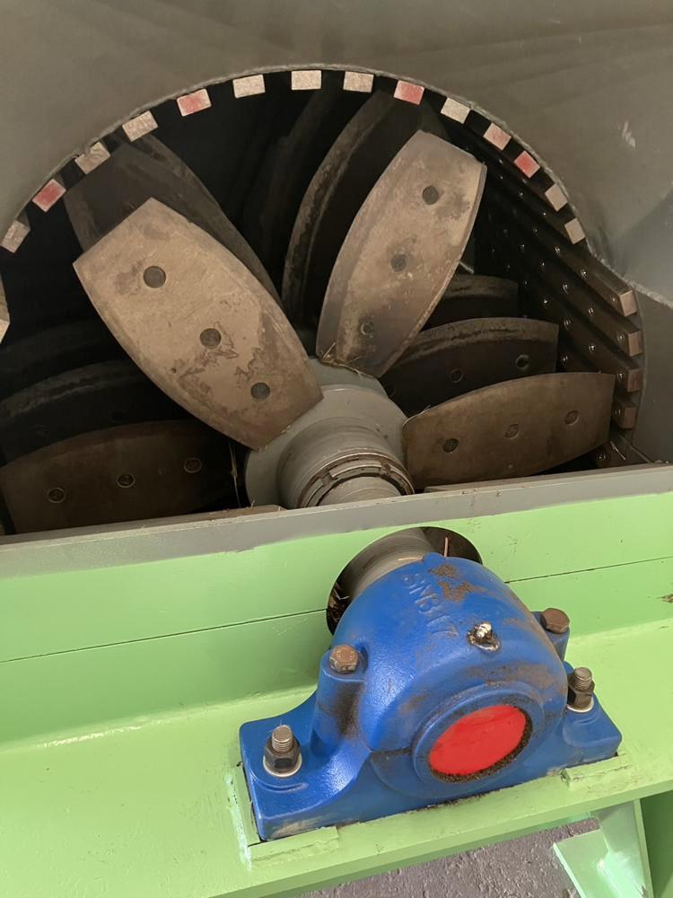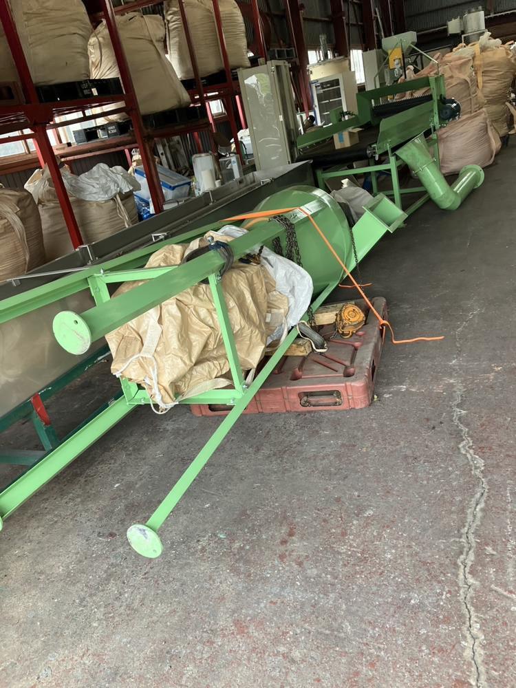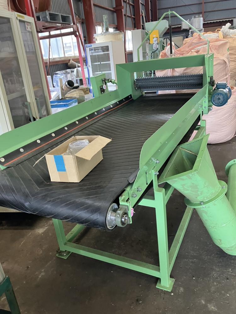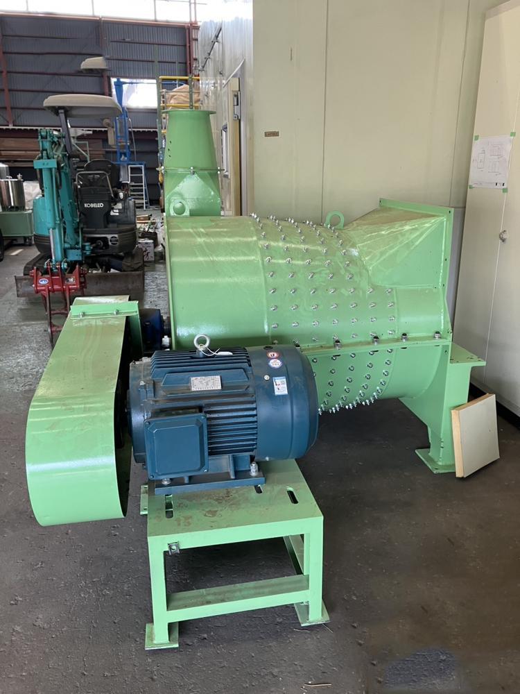 ・品名:草木類破砕機 ・メーカー:中国製 ・年式:2004年 ・主電動機:75kW(インバーター付き) ・処理能力:500~1000kg/h ※メーカー値、対象物より異なります。 構成:破砕機本体、投入コンベア、ブロア、サイクロン |