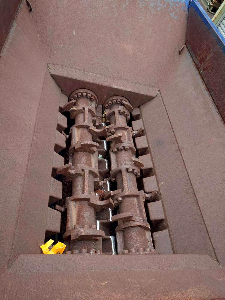 ・品名:御池鐵工所製移動式油圧駆動剪断式2軸破砕機・バイキング ・メーカー:御池鐵工所 ・型式:AMB633 ・年式:2010年 ・投入ホッパー寸法:L3430×W2080mm ・破砕室寸法:L1900×W1040mm ・エンジン:キャタピラーエンジン300HP ・処理能力:30~100m3/h※カタログ値 ・アワーメーター:6300h |