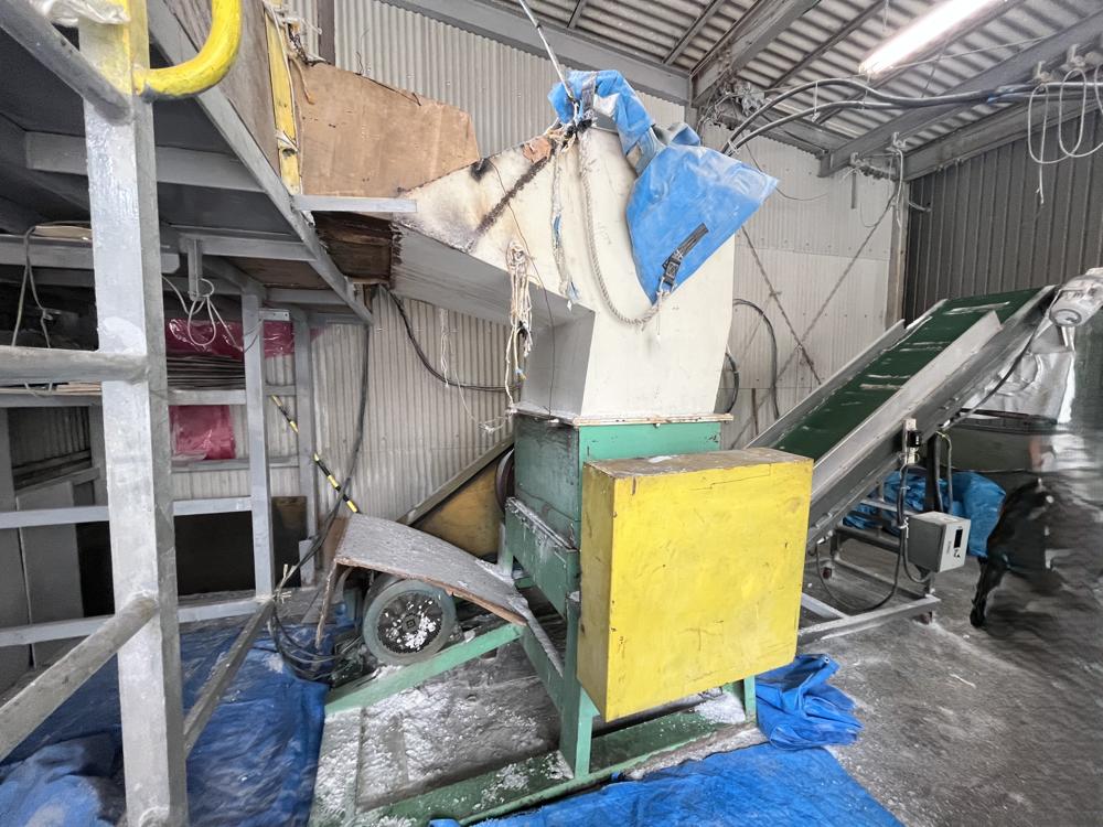 ・品名:中国製粉砕機 37kW ・メーカー:中国製 ・型式:不明 ・年式:不明 ・PETボトルを粉砕していました ・動作確認可能 ・搬出コンベア付き |