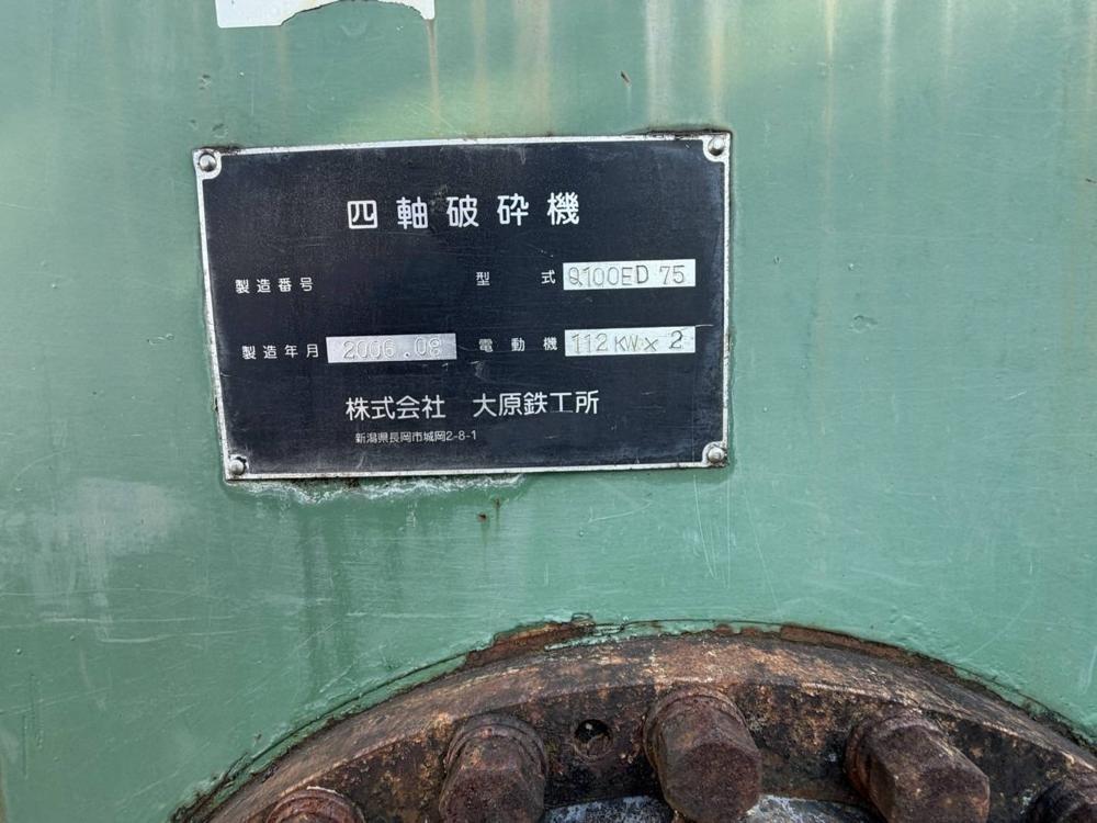 ・品名:SSI製4軸破砕機 112kW×2 ・メーカー:SSI(大原鉄工所) ・型式:Q100ED 75 ・年式:2006年 ・モーター:112kW×2台 一言:任期のSSI製の4軸が出てきました♪ |