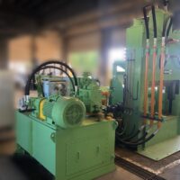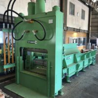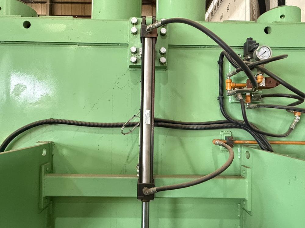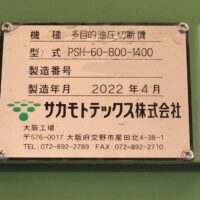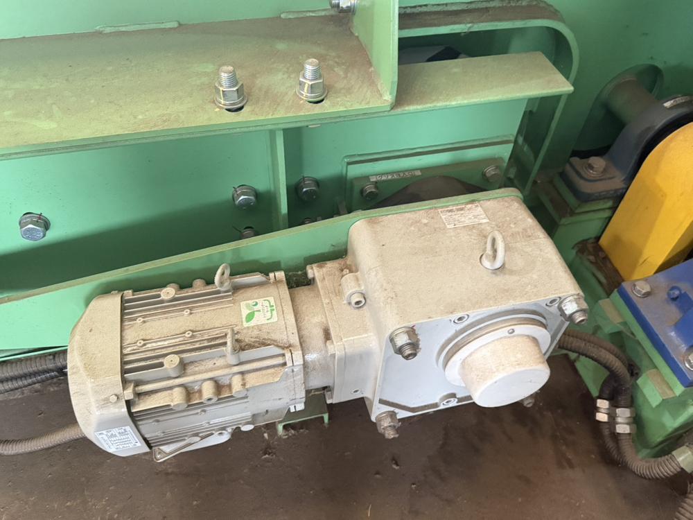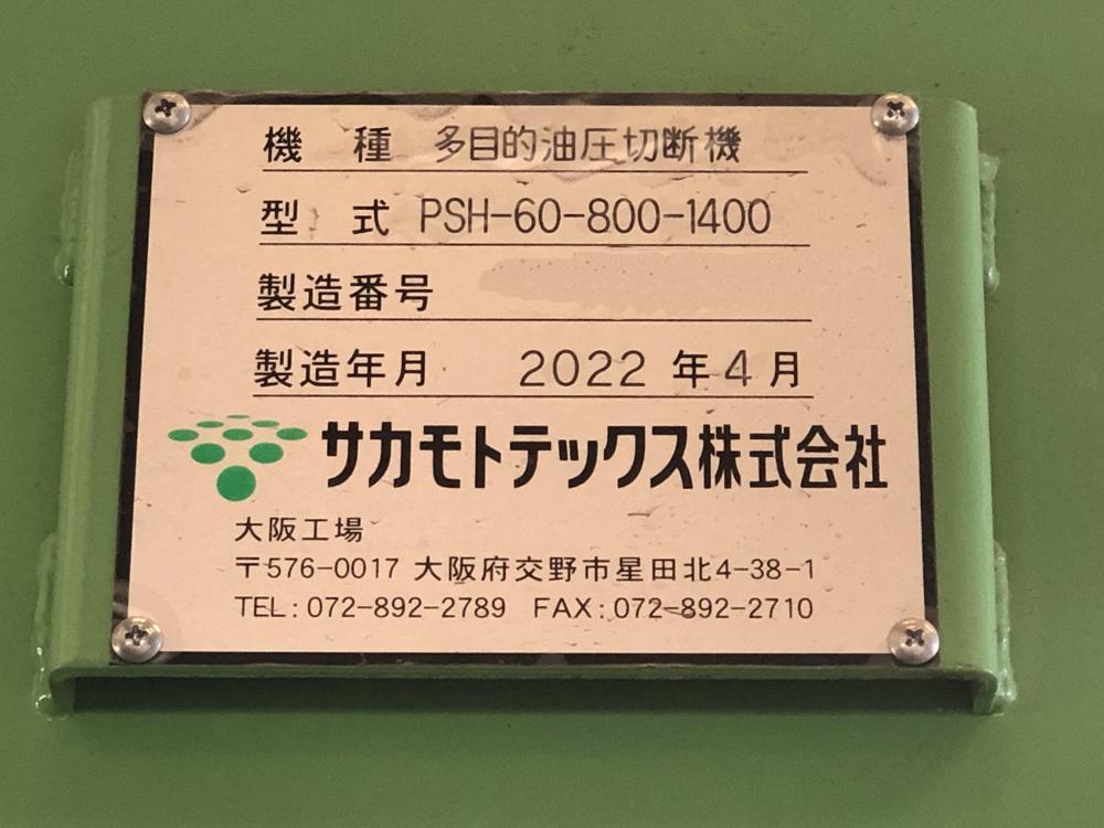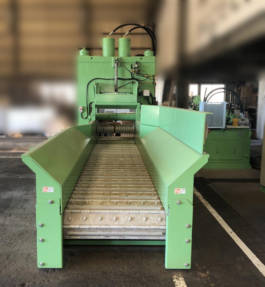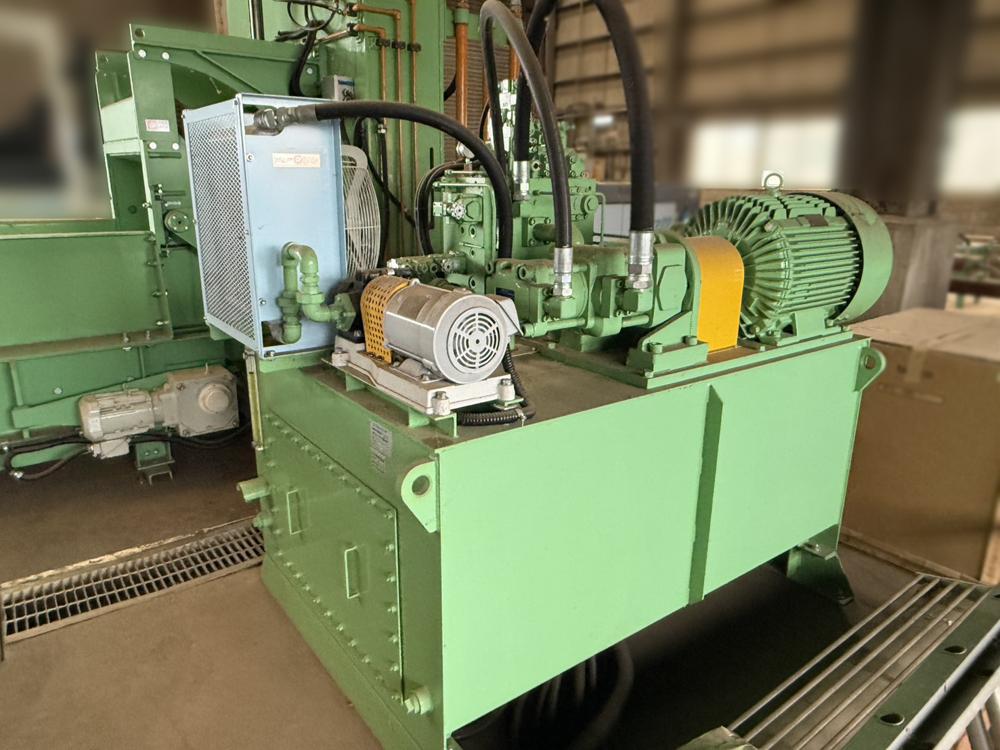 ・品名:サカモトテックス製 多目的切断機(送りコンベア付き) ・メーカー:サカモトテックス ・型式:PSH-60-800-1400 ・年式:2022年4月 ・電源:三相200 V ・油圧ユニット モーター :45 kW 4 P 高圧ポンプ:108 ℓ QTダブルポンプ:QT-6153-200-63 低圧ポンプ:350 ℓ 圧力 常用:16 MPa タンク容量:1200 ℓ ・油圧シリンダー:φ270×φ210×800ST 2本 ・切断力 常用:約180t ・有効切断寸法:横幅1290 mm 高さ800 mm ・速度(無負荷運転):下降 約13秒/上昇 約5秒 ・刃物 :W1400×D25×H250 mm 1枚 ・ワーク送り装置(下部):チェーン駆動装置(キャタピラー方式) モーター 1.5 kW 4 P ギヤードモーター ・ワーク送り装置(上部):送り駆動装置 モーター 0.75 kW 4 P ギヤードモーター ・投入箱スペース:W1290×H800×L3100mm(後側オープン) ・1階上下切断タイム:約43秒 ・機械寸法:W4000×L5500×H3500 mm(架台含まず) ・機械重量:約10000 kg(架台含まず) ・付属品:送りコンベア、油圧ユニット、架台(階段、通路デッキ部材) 仕様書、外形図、全体組立図、処理能力計算書 |