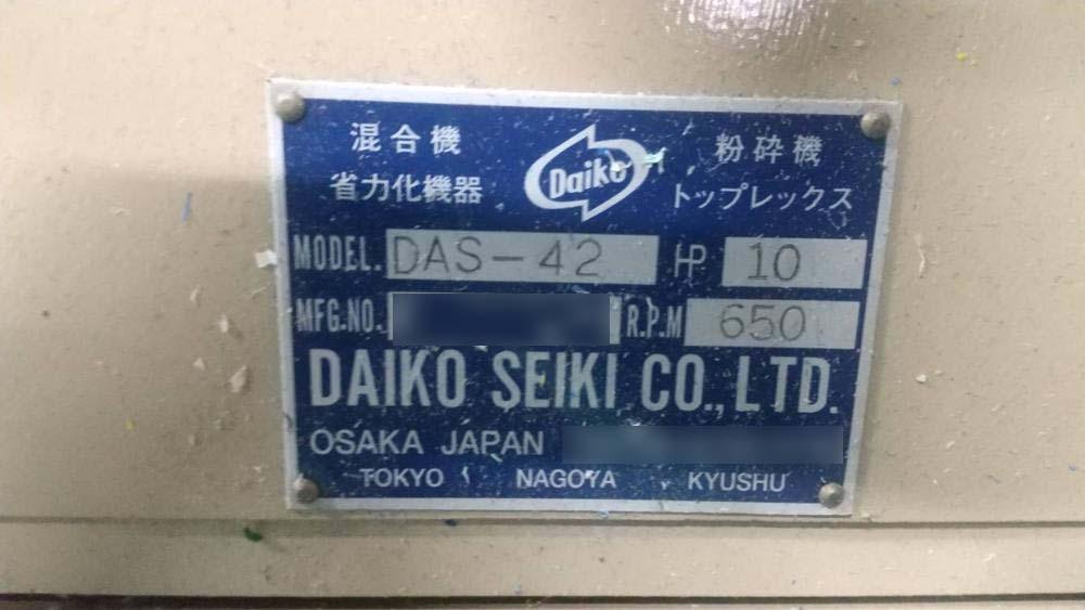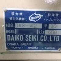 ・品名:ダイコー製粉砕機 7.5kW ・メーカー:ダイコー製 ・型式:DAS-42 ・年式:不明 ・ダイコー製粉砕機 ・電動機:7.5kW ・カッター有効幅:420mm×240mm ・重量:約550㎏ ※カタログ参考値 |