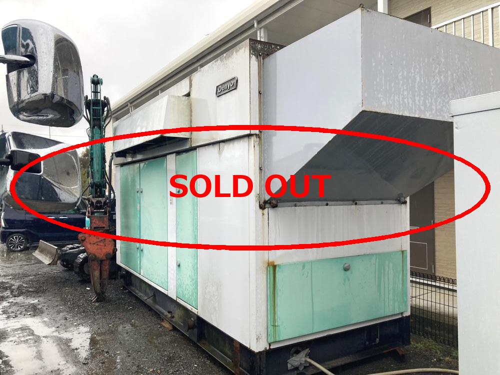 | 【内容】 | ・品名:デンヨー製発電機 ・メーカー:デンヨー(株) ・型式:DF-3300K ・年式:1999年 ・極数:4極 ・出力:215kVA ・電圧:220V ・電流:564A ※別途、燃料タンクと煙突が付帯します。 |