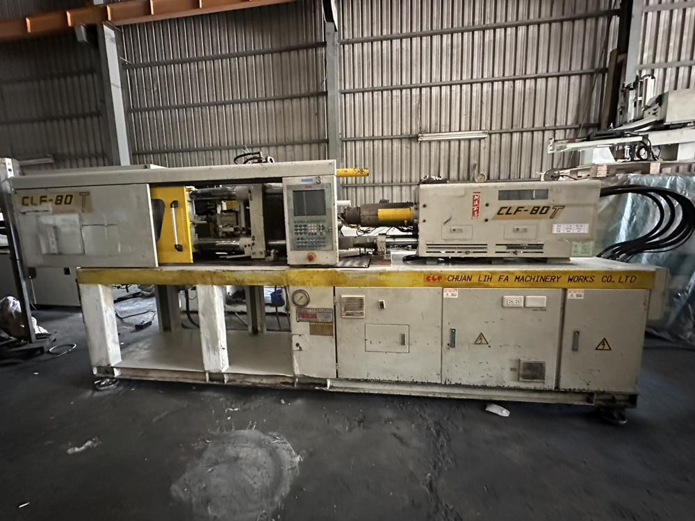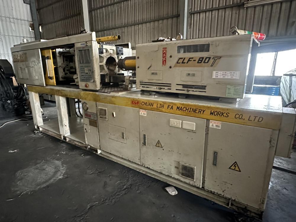 ・品名:全立発(Chuan Lih Fa、台湾)製 80t 射出成型機 ・メーカー:全立発(Chuan Lih Fa) ・型式:CLF 80T ・年式:不明 ・Chuan Lih Fa 全立発製射出成型機 ・型締力:80t |