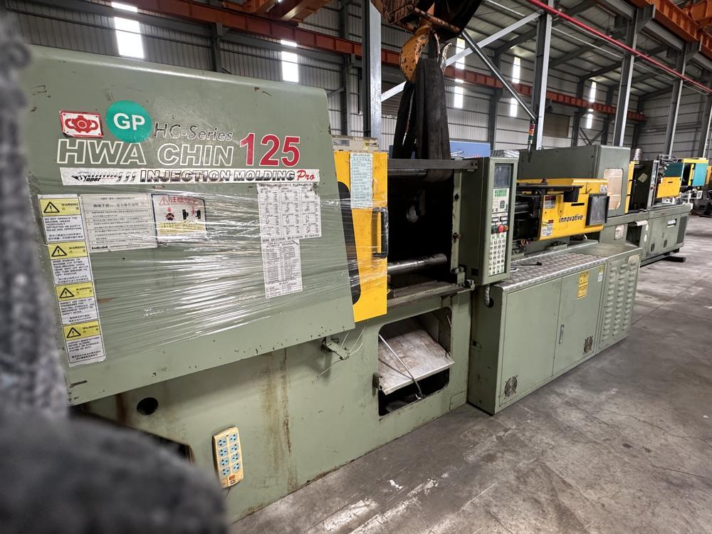 ・品名:Hwa Chin(樺欽總:台湾)製 HC130 射出成型機 ・メーカー:Hwa Chin Machinery Co., Ltd. (樺欽總公司:台湾) ・型式:HC130 ・年式:不明 ・型締力:130t |