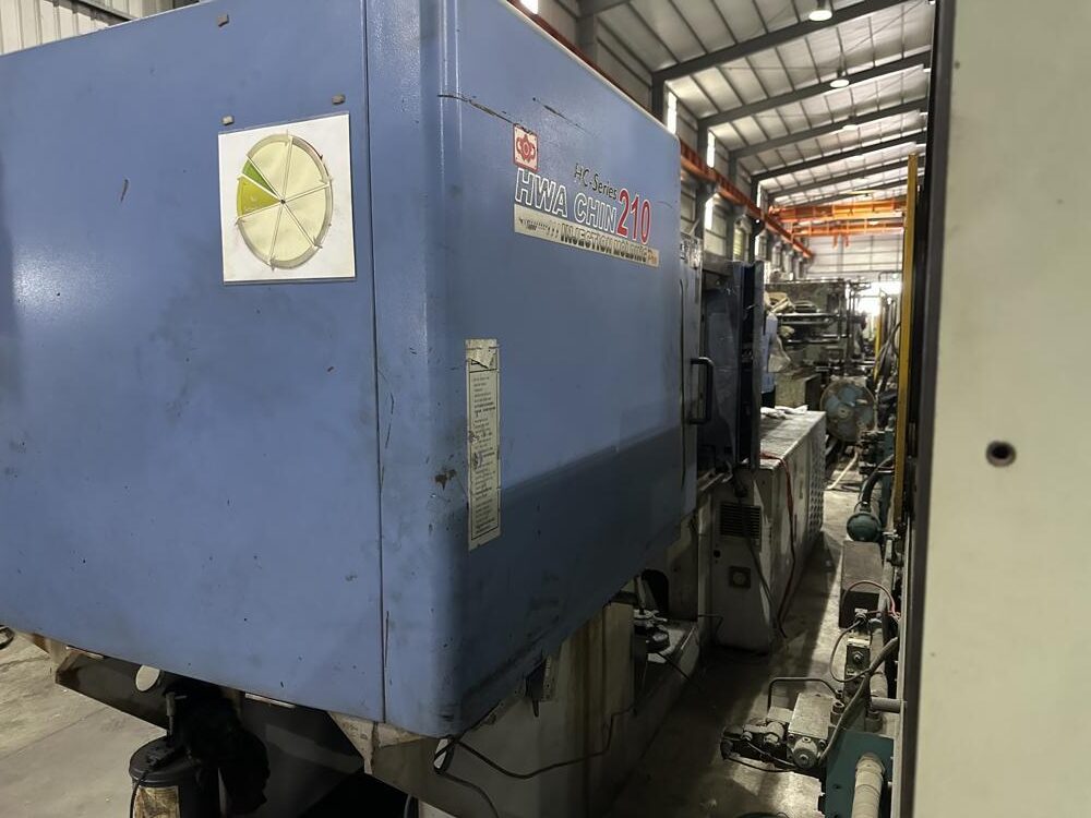 ・品名:Hwa Chin(樺欽總:台湾)製 HC210 射出成型機 ・メーカー:Hwa Chin Machinery Co., Ltd. (樺欽總公司:台湾) ・型式:HC210 ・年式:不明 ・型締力:210t |