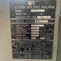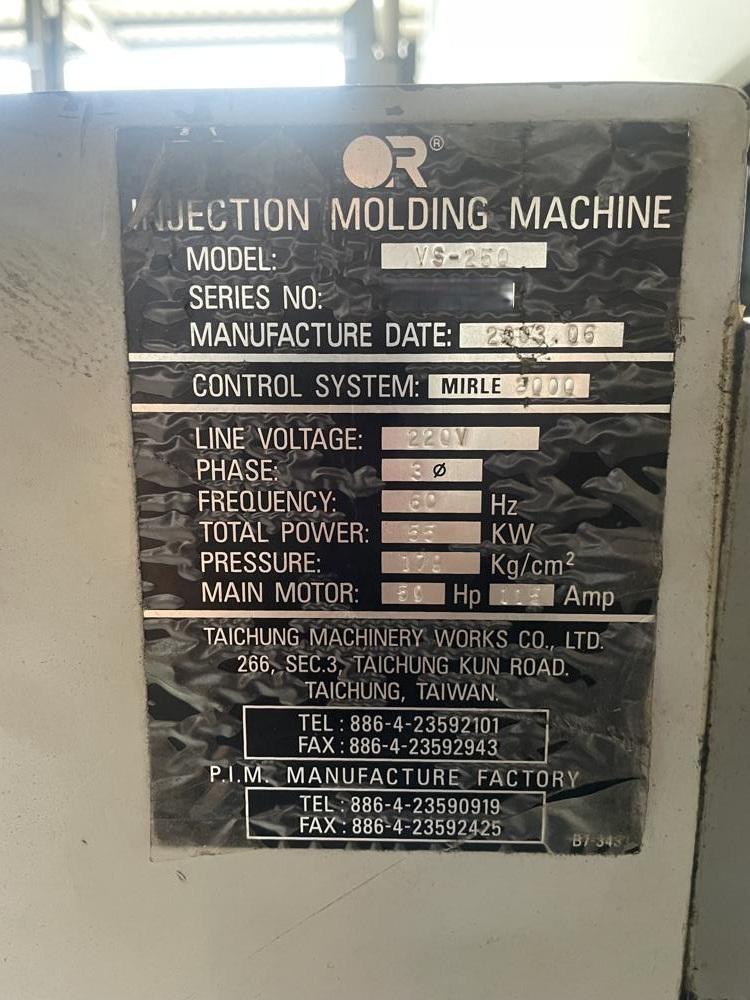 ・品名:Victor(台中精機:台湾)製 Vs-250 射出成型機 ① ・メーカー:Victor Taichung Machinery (台中精機廠股彬有限公司) ・型式:Vs-250 ・年式:不明 ・型締力:250t |