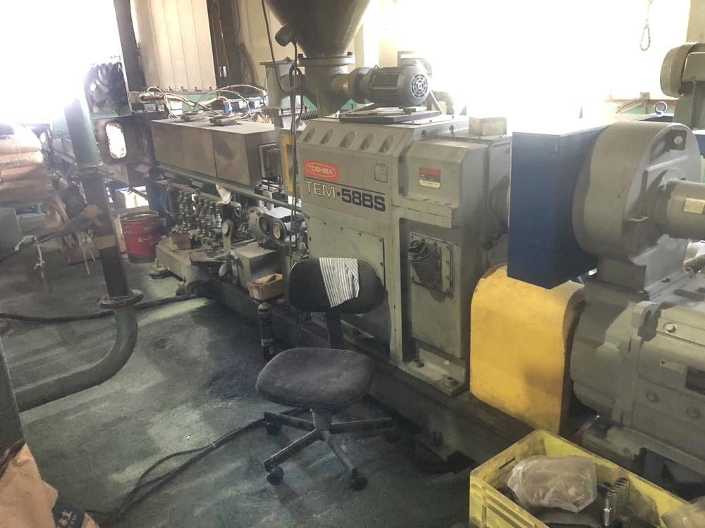 | 【内容】 | ・品名:東芝製2軸押出ライン ・メーカー:東芝 ・型式:TEM-58BS ・設備構成:2軸押出機(東芝)、真空ポンプ(神港精機)、水槽(マクロス)、ペレタイザー(石中) ・備考:投入装置付き。ペレタイズ後のブロー、サイクロンは付帯しません。 |