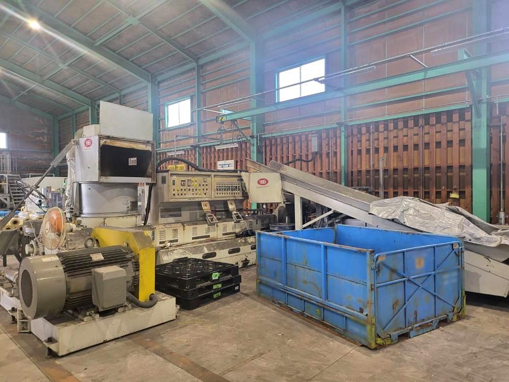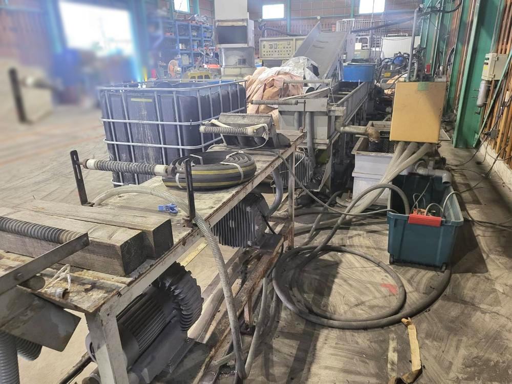 ・品名:一億社製再生機120mm・ストランドタイプ ・シュレッダードラム ・Φ120mm本体 ・スクリーンチェンジャー ・水槽 ・ペレタイザー ・水循環設備 |