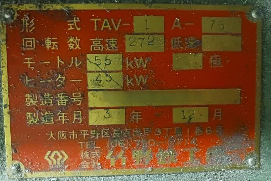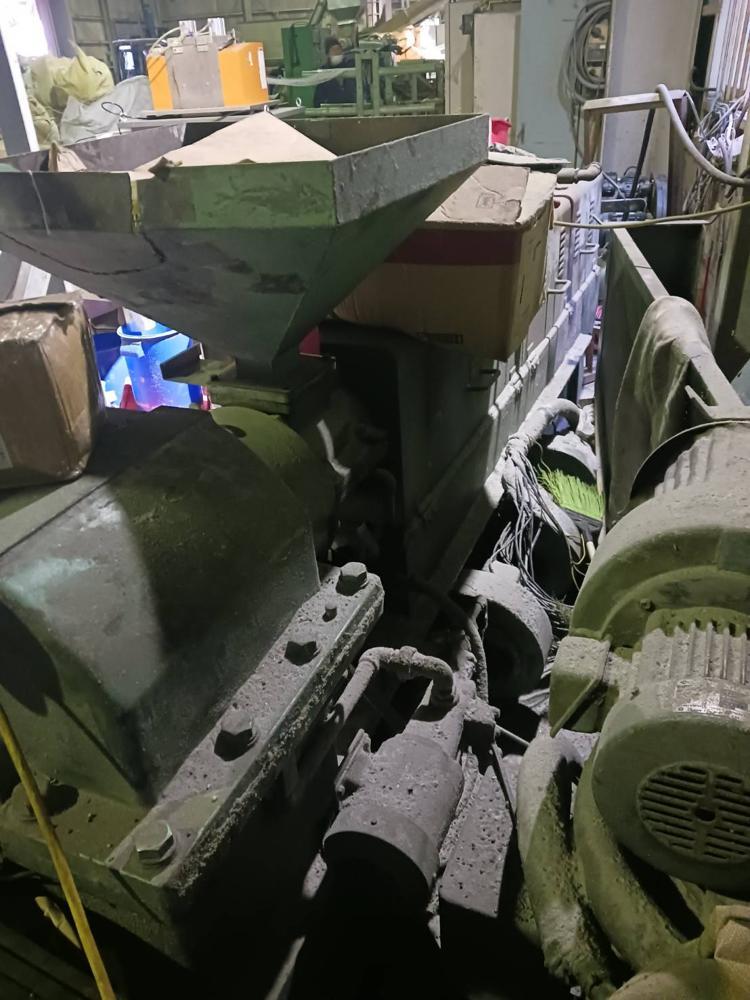 ・品名:75mm 押出機 竹中鉄工所製 ・メーカー:竹中鉄工所 ・型式:TAV-1 ・年式:1991年 ・材料:ナイロン(gf入り) ・スクリュー径:75mm(対磨耗使用) 備考①:動いた状態を買い取って使っておりません。 備考②:直流モーターです。 付属:本体、ブロア、キャッチャータンク紙袋用、ペレタイザー、水槽、制御盤、予備スクリュー1本(対磨耗PA用) |