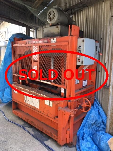 | 【内容】 | ・品名:タテ型プレス機(圧縮梱包機) ・結束:PPバンド ・メーカー:PHILADELPHIA TRAMRAIL INC(アメリカ製) ・成形サイズ:幅1500㎜×奥行き:800㎜ ・電動機:7.5kw(10HP) ※世界中に納入実績が多いプレス機です。 |
