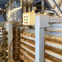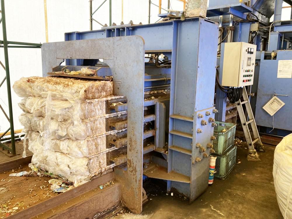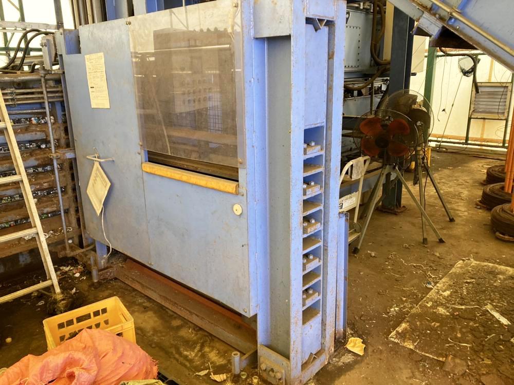 ・品名:橋本製作所製全自動ベーラー ・メーカー:(有)橋本製作所 ・型式:KH-SD110HP TYPE:D ・主電動機:37kW-6P×2 ・シリンダー出力:111ton ・圧縮物ベール寸法:W1000×H1000×L自在 ・圧縮物ベール重量:約800kg※サイズ、材料により異なります。 ・処理能力:6000kg/h~※諸条件により異なります。 ・結束方式:自動5本結束 |