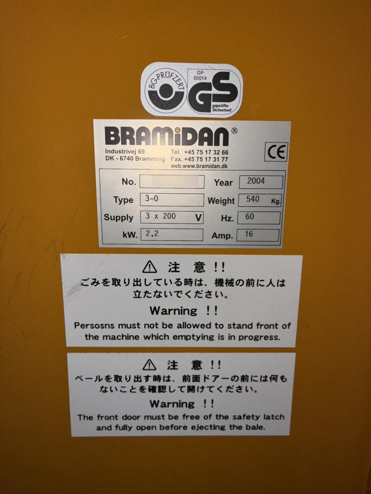 ・品名:ブラミダン製縦型プレス機 圧縮圧8トン ・メーカー:ブラミダン(BRAMIDAN) ・型式:3-0 ・年式:2004年 ・電圧:3相 200V ・モーター容量:2.2kW ・重量:540kg ・周波数:60Hz ・アンペア数:16A ・圧縮圧:8トン |