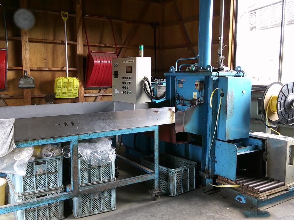 ・品名:油研工業製ペットボトル梱包機 ・メーカー:油研工業 ・型式:YB-10P-SA-34 ・年式:2001年 ・処理能力:100~150kg/h ※カタログ値 ・ベール寸法:幅640×奥行430×高さ350mm ・ベール重量:15から8kg ※カタログ値 ・PPバンド結束:全自動 |