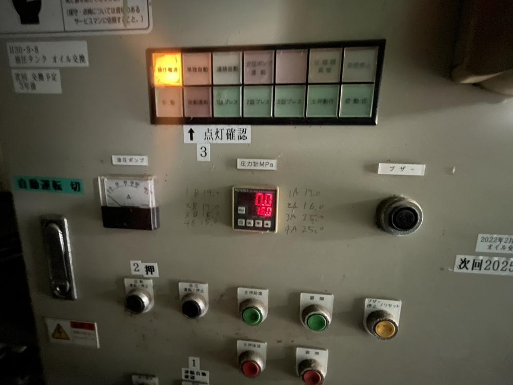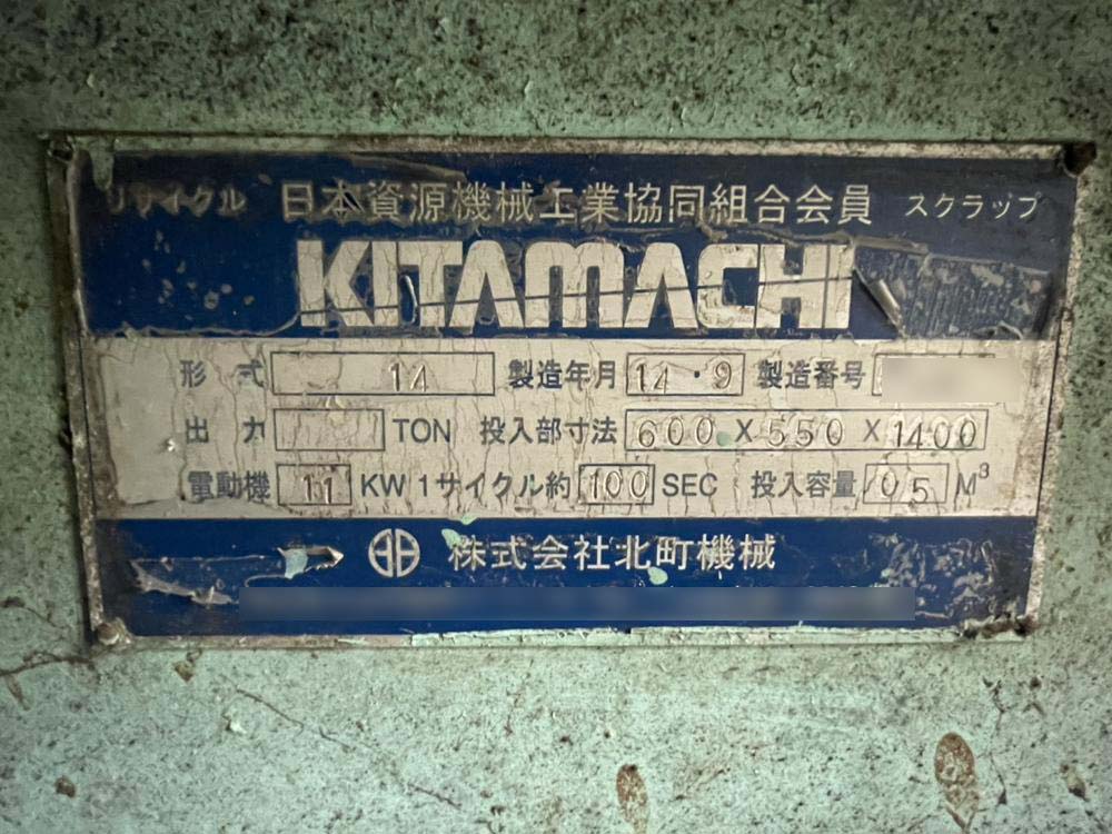 No.6354E【中古】北町機械製缶プレス機 圧縮梱包機, 金属用プレス機 【価格】 ※お問い合わせ下さい。 【内容】 ・品名:北町機械製缶プレス機 ・メーカー:北町機械 ・型式:14 ・年式:2002年 ・電動機:11kW 一言:北町機械製缶プレスが出てきました‼期間限定での案内です。探されていた方は是非お問い合わせください。 【条件】 現状置場渡し、保証なし、売り切れ御免、ご発注時一括現金振込 【掲載日】 2026年4月14日 この機械に関するお問い合わせ Related Posts No.3721E【中古】Bishamon製竪型プレス機 加圧力10t No.5226E【中古】オーワック(ORWAK)製縦型圧縮梱包機(プレス機) No.630 Y【中古】全自動圧縮梱包機