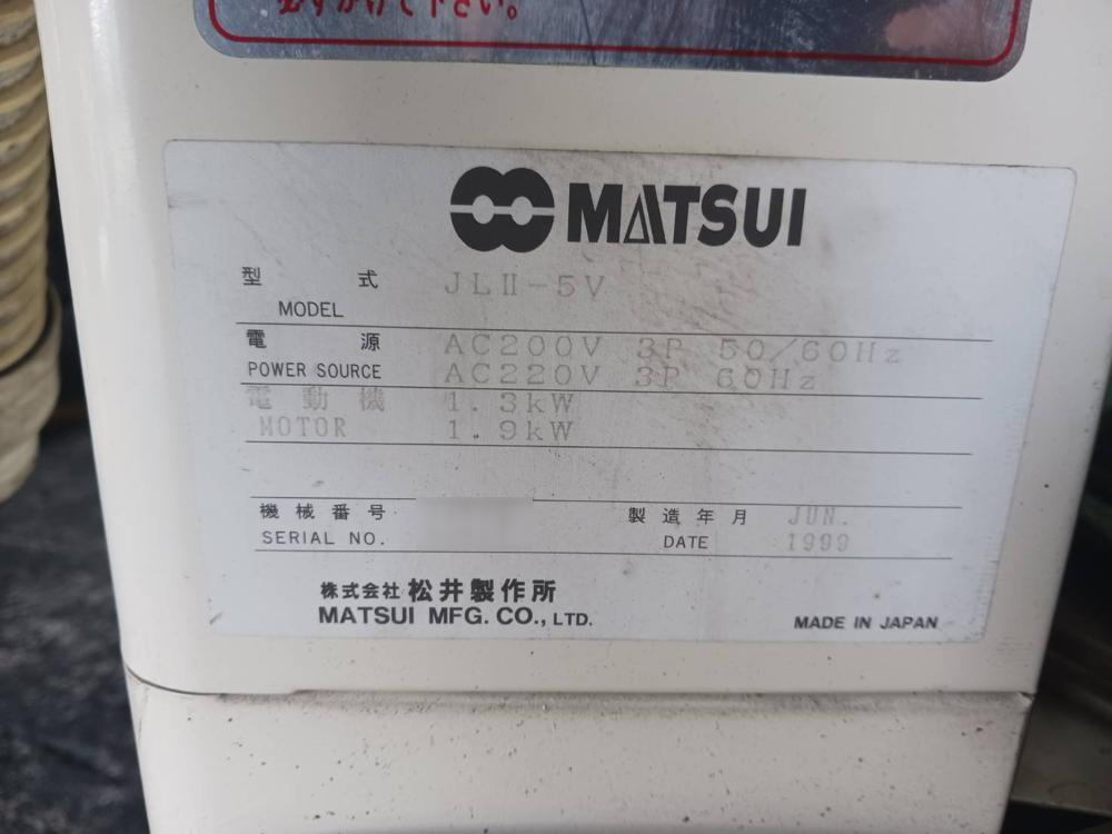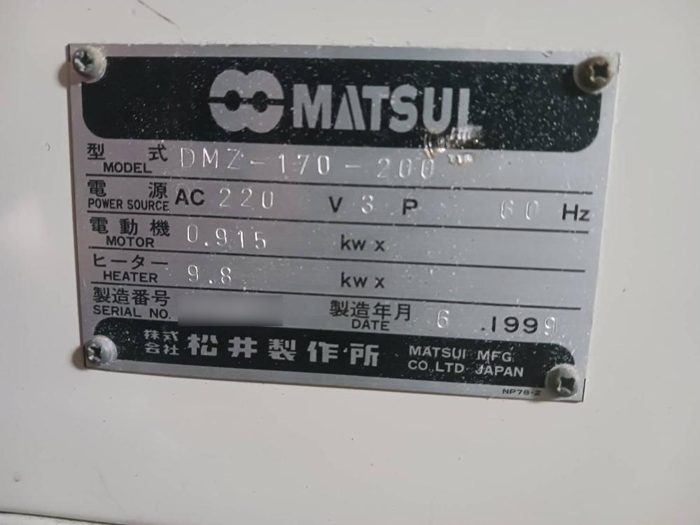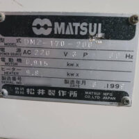・品名:松井製 除湿乾燥機 仕込み200kg ・メーカー:松井製作所 ・型式:DMZ-170-200 ・年式:1999 ・仕込み200kg ・付属品:ホッパー、ローダー |