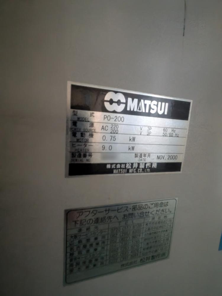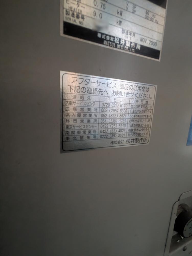 ・品名:松井製作所製箱型乾燥機 ・メーカー:松井製作所製 ・型式:PO-200 ・年式:2000 ・仕込み200kg |