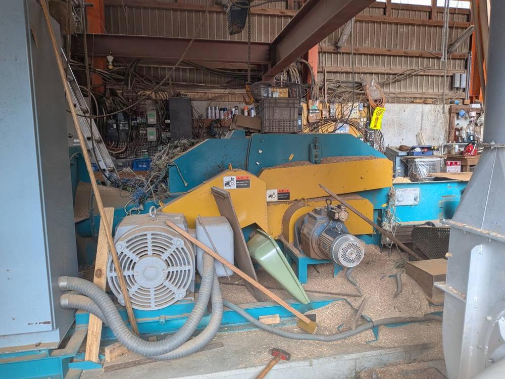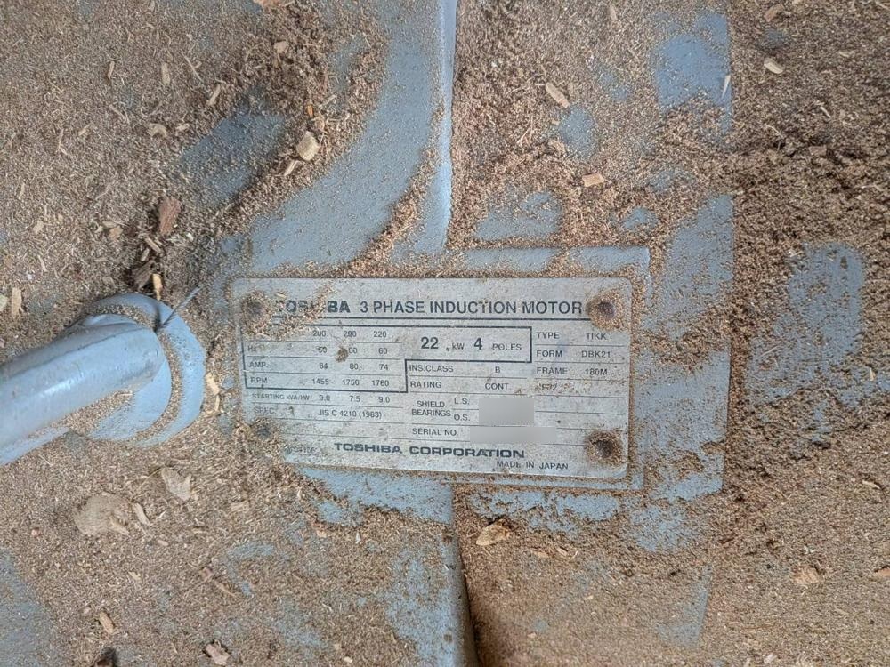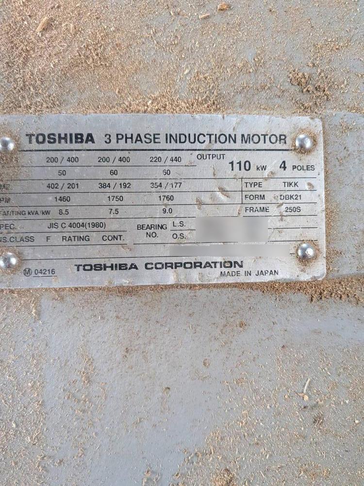 ・品名:御池鐵工所製オガライザーSDM-Ⅱー150 ・メーカー:御池鐵工所 ・型式:SDM-Ⅱー150 ・年式:2000年 ・総動力:135.7kW (主モーター:110kWー4P、ブロア:22kWー4P) |